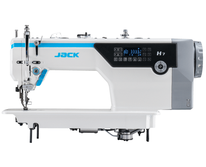 A Jack H7 é uma máquina industrial eletrônica de transporte duplo, projetada para materiais pesados e de múltiplas camadas, como couro, lona e jeans grosso.